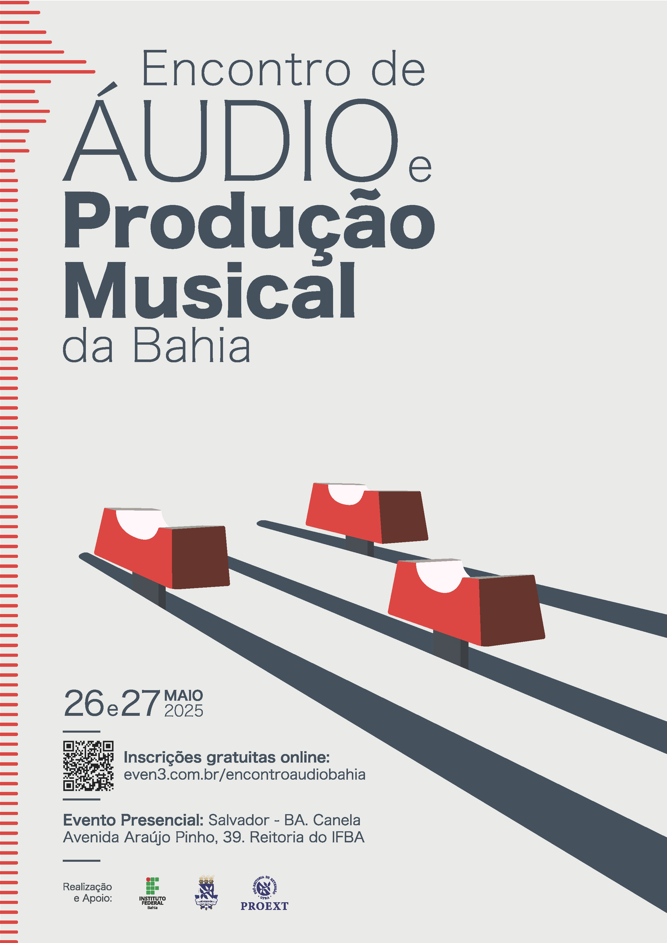 A Escola de Música da Universidade Federal da Bahia (EMUS/UFBA), em parceria com o Instituto Federal da Bahia (IFBA) realiza Encontro de Áudio e Produção Musical da Bahia. Gratuito, o evento acontece nos dias 26 e 27 de maio, na Reitoria do IFBA.